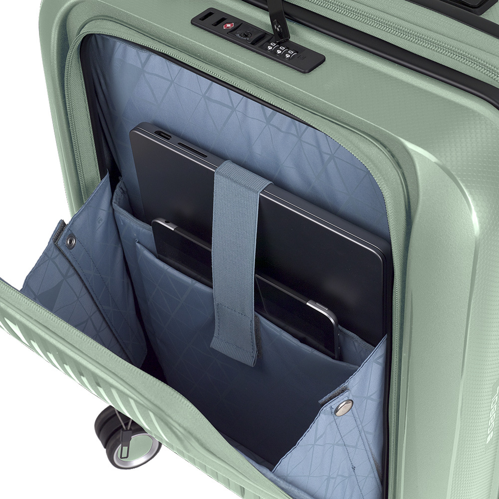 Ubedljivo najbolje organozovan model kabinskog kofera za kraća putovanja. Izradjen je od polipropilena, materijala koje elastičniji i samim tim otporniji na udarce od klasičnog ABS-a. Na prednjoj strani kofera nalazi se posebna pregrada sa tri odeljka: za laptop, za tablet i poslovne dokumente koji mogu biti i poverljive sadržine. Taj deo je zaštićen o kradje sigurnosnom sajlom. Svaka polovina kofera ima sopstveno zip zatvaranje, a na jednoj se nalaze i dve dodatne zip pregrade za sitnice. Teleskopska ručka ima tri položaja, čime je omogućeno potpuno prilagođavanje po visini. TSA brava se nalazi na gornjoj strani kofera i istovremeno obezbeđuje osiguranje prednjeg pregratka uz momoć sigurnosnih sajli.