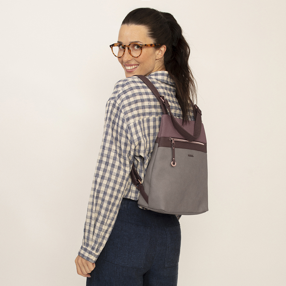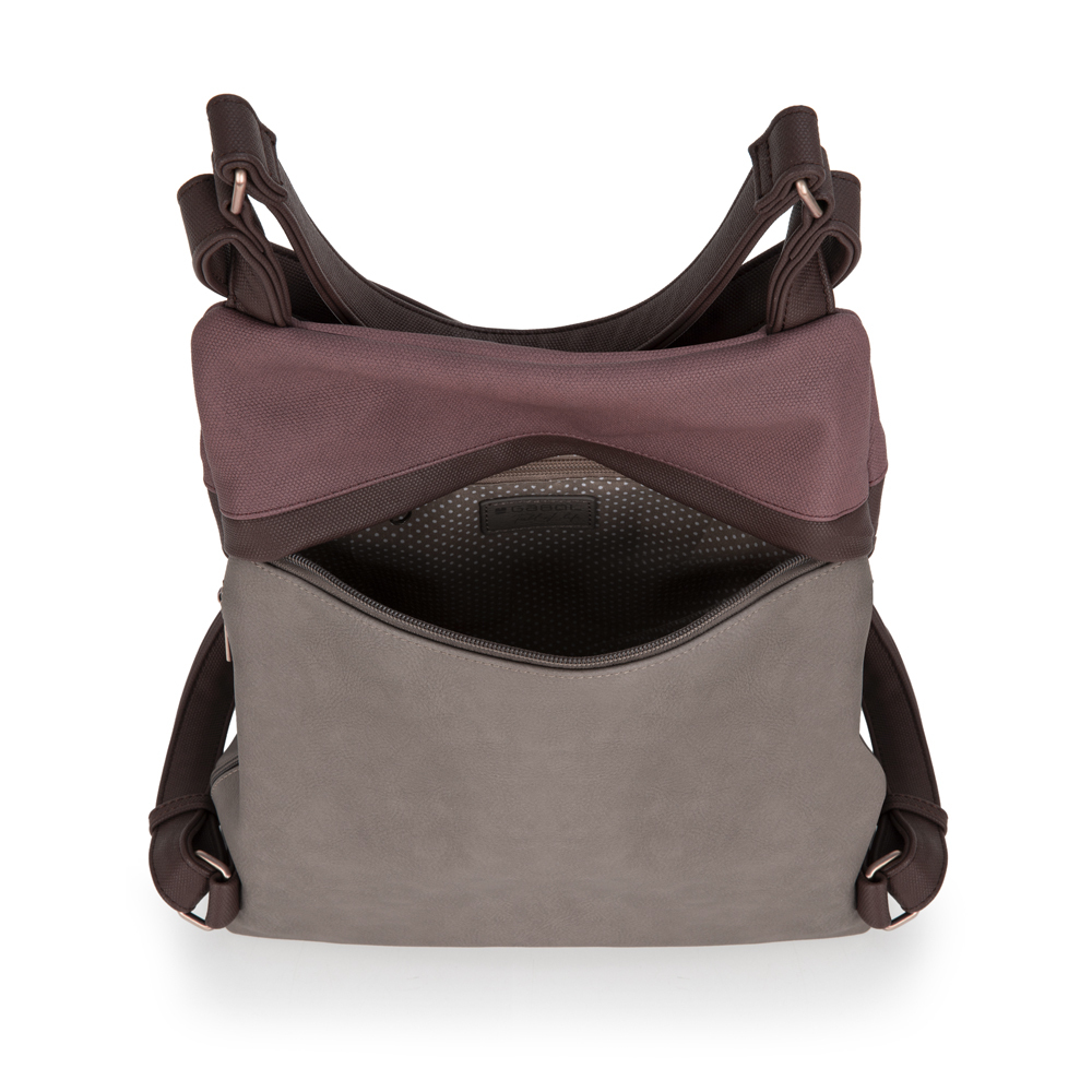 Ranac Dara iz Gabol kolekcije je savremeni i funkcionalni ranac koji nudi idealnu kombinaciju stila i praktičnosti. Ranac je izradjen od kvalitetne eko kože i tekstila, što doprinosi njegovoj izdržljivosti. Bordo, sivo-braon kombinacija boja ga čini veoma elegantnim i idealnim izborom za predstojeću jesenju sezonu. Ranac poseduje više pregrada i džepova kako sa unutrašnje strane tako i sa spoljašnje,što omogućava dobru organizaciju stvari, koje nosite svakodnevno u rancu.