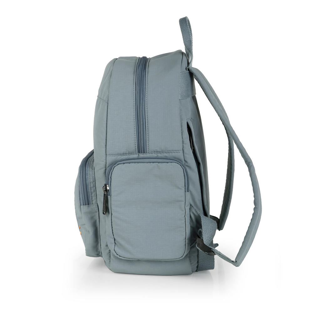 Moderan Gabol ženski ranac predstavlja savršen spoj urbane estetike i visoke funkcionalnosti, dizajniran da odgovori na sve izazove dinamičnog dana. Izrađen je od laganog vodootpornog materijala u prefinjenoj plavo-sivoj nijansi, koji pruža sigurnu zaštitu stvari od kiše i vlage. Ranac nudi vrhunsku organizaciju prostora sa prostranim glavnim odeljkom, upečatljivim prednjim džepom i dva praktična bočna džepa sa patent zatvaračima za brz pristup sitnicama. Maksimalna udobnost osigurana je meko postavljenim naramenicama i ojačanom gornjom ručkom, dok autentičan vizuelni identitet naglašavaju diskretni narandžasti detalji i unikatni dekorativni privezak od upletenih kanapa. Zahvaljujući svojoj izuzetnoj lakoći i tehničkoj pouzdanosti, ovaj model je idealan izbor za posao, obrazovanje ili slobodno vreme, pružajući besprekoran stil u svim vremenskim uslovima.