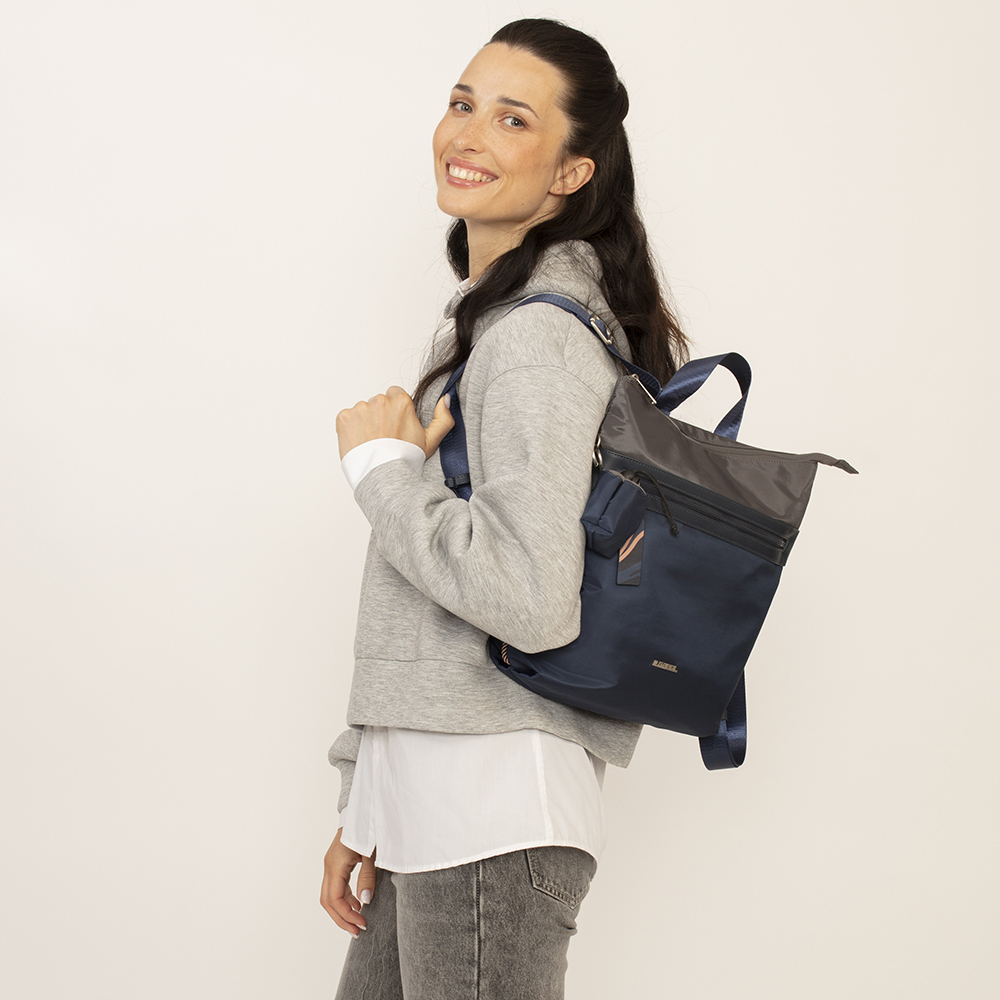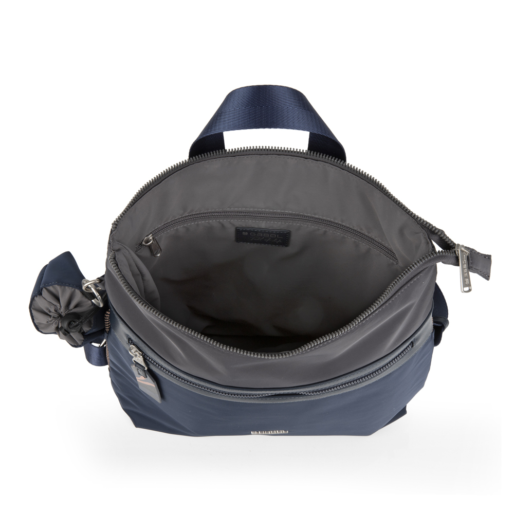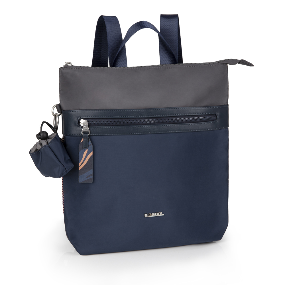 Izuzetan model ranca iz najnovije Gabol kolekcije, izradjen od kombinacije sintetičke kože i sintetičkog poliestera, vodonepropusnog materijala, bez PVC primesa. Poseduje jednu veliku pregradu sa unutrašnjim džepom koji omogućava skladištenje mnogih stvari i spoljašnji džep sa prednje stranje za brzu pretragu osnovnih sitnica koje svakoj dami trebaju. Poseduje posebno zašivenu ručku za nošenje u ruci, tako da ga ne morate nositi samo na ledjima. Uz svaki ranac se dobija mini privezak vrećica, koja se zatvara učkurom.