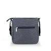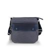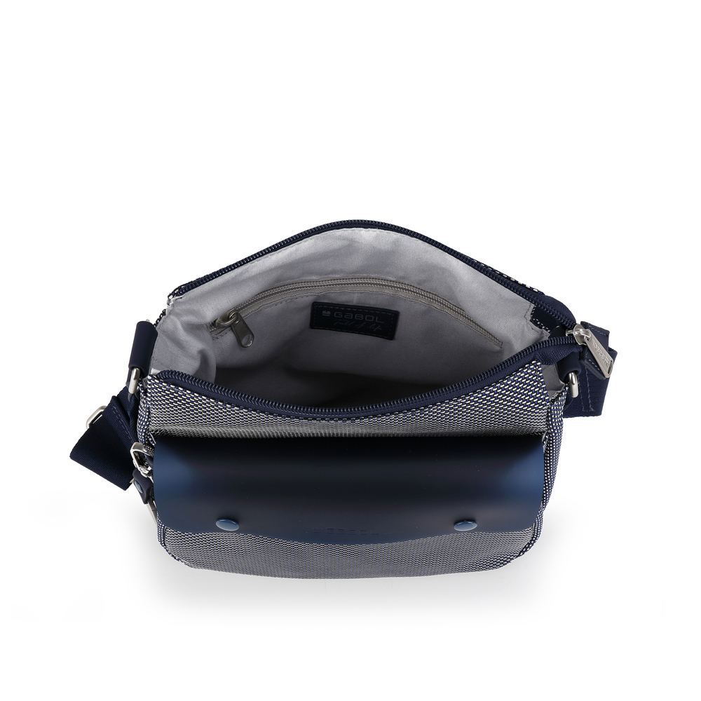 Ova Gabol torba predstavlja svestrano rešenje koje spaja eleganciju i praktičnos. Izrađena je od kvalitetnog pletenog materijala u prepoznatljivoj teget-beloj kombinaciji, čime se postiže moderan vizuelni identitet uz visoku izdržljivost. Specifičan detalj predstavlja prednji džep sa polutransparentnim teget poklopcem i dekorativnim kopčama, dok prostrana unutrašnjost sa dezeniranom postavom i dodatni zadnji džep sa patent zatvaračem osiguravaju besprekornu organizaciju. Torba nudi dvostruke opcije nošenja: pomoću fiksnih ručki za nošenje u ruci ili putem podesivog, odvojivog tekstilnog remena za nošenje preko ramena. Upotpunjena elegantnim metalnim priveskom sa logotipom brenda, ova torba je idealan izbor za korisnice koje traže lagan i funkcionalan aksesoar za svakodnevne gradske aktivnosti.