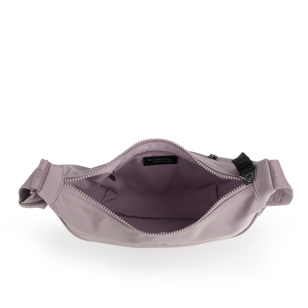 Ova Gabol torba ističe se svojim modernim polumesec oblikom i urbanom estetikom. Izrađena je od visokokvalitetnog vodootpornog materijala koji pruža pouzdanu zaštitu od padavina, zadržavajući pritom laganu i fleksibilnu strukturu. Unutrašnjost nudi dovoljno prostora za svakodnevne potrepštine, dok dodatni džep sa rajsferšlusom na zadnjoj strani omogućava brzu dostupnost najvažnijih sitnica. Široki podesivi kaiš sa reljefnim logotipom brenda osigurava stabilnost i udobnost, čineći je praktičnim izborom za dinamičan tempo života. Prednji gumirani amblem diskretno naglašava autentičnost dizajna, ostavljajući moderan i profesionalan utisak bez suvišnih detalja.