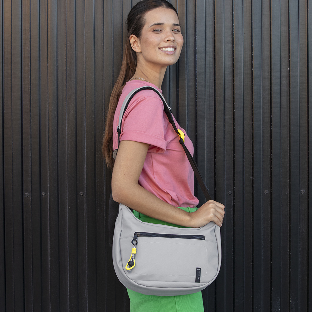 Prostrana i stilski upečatljiva, Gabol torba iz urbane kolekcije predstavlja savršen spoj modernog dizajna i visoke funkcionalnosti. Izrađena je od izuzetno izdržljivog materijala u svetlosivoj nijansi, sa prepoznatljivim polukružnim oblikom koji nudi veći kapacitet za svakodnevne potrebe. Torba omogućava besprekornu organizaciju kroz veliki prednji džep, prostranu glavnu pregradu i dodatni zadnji džep, svi osigurani robusnim crnim patent zatvaračima. Specifičan vizuelni identitet naglašen je neon-žutim detaljima, uključujući dekorativni privezak od kanapa i atraktivnu kopču na širokom, podesivom remenu koji osigurava maksimalnu udobnost pri nošenju. Sa unutrašnjom postavom i dodatnim džepom za dokumenta, ovaj model je idealan izbor za aktivne korisnike koji traže laganu, dugovečnu i moderno dizajniranu torbu za dinamičan život u gradu.
