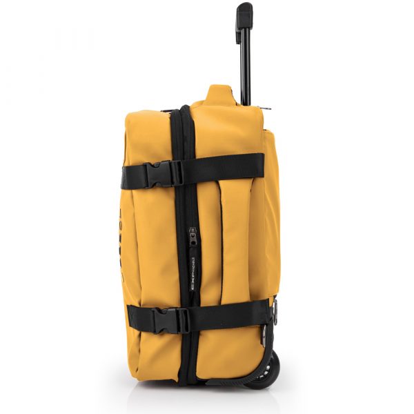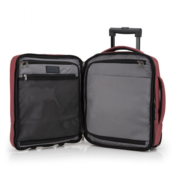 Najnoviji model iz kolekcije Canada, 2 u 1, torba sa točkićima/ranac, sa proširivim pregradama i kapacitetom od 24l. Apsolutno najbolje organizovan prtljag za low cost letove i kratka putovanja uopšte.Pogodan kao ručni prtljag ispod sedišta u avionu. Organizovan kao kofer, sa dva unutrašnja odeljka, od kojih jedan odgovara laptopu od 15,6 inča. Na prednjoj strani ranca je mala zip pregrada za sitnice. Ranac ima kvalitetne, ojačane ručke sa gornje i bočne strane, kao i čak četiri zatezača. Napravljen od poliestera obloženog smolom i sintetičke kože. Sastoji se od visokokvalitetne postave i unutrašnjeg organizatora. Visina sa produženom ručkom: 101 cm. Može se koristiti kao ranac ili kao kofer. Dostupan u 6 boja: crna, siva, tamno zelena, tamno plava, bordo i žuta.