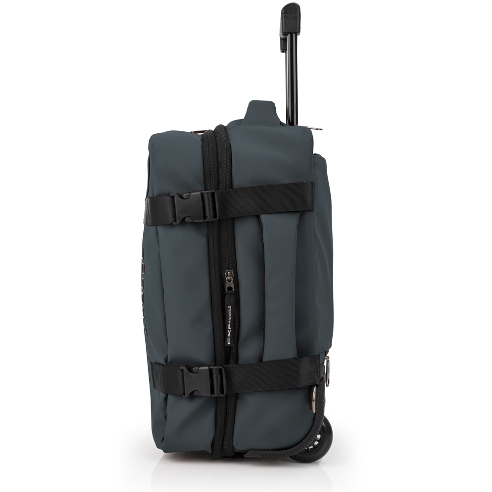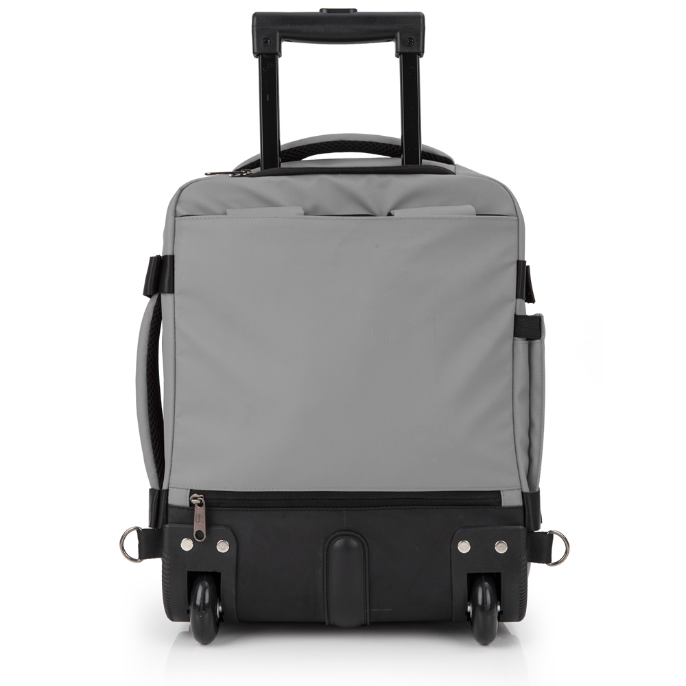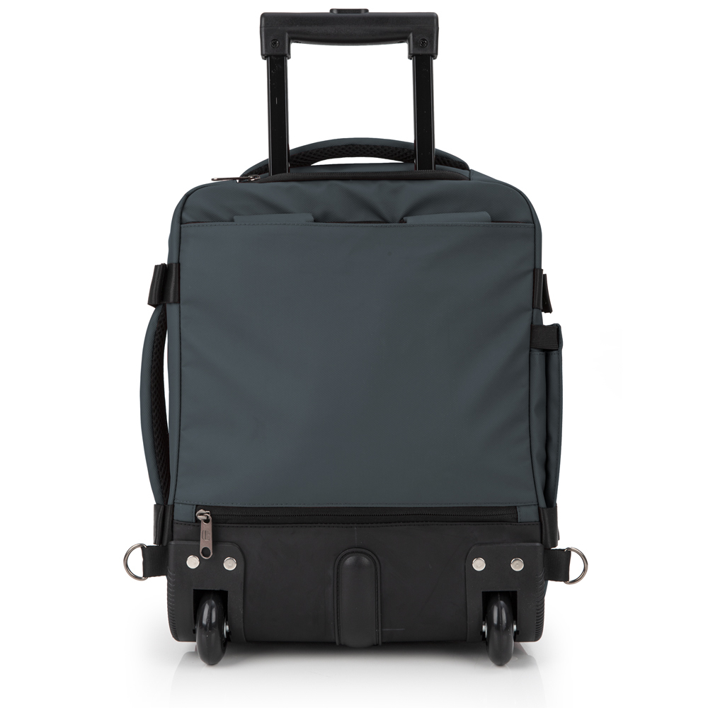 Najnoviji model iz kolekcije Canada, 2 u 1, torba sa točkićima/ranac, sa proširivim pregradama i kapacitetom od 24l. Apsolutno najbolje organizovan prtljag za low cost letove i kratka putovanja uopšte.Pogodan kao ručni prtljag ispod sedišta u avionu. Organizovan kao kofer, sa dva unutrašnja odeljka, od kojih jedan odgovara laptopu od 15,6 inča. Na prednjoj strani ranca je mala zip pregrada za sitnice. Ranac ima kvalitetne, ojačane ručke sa gornje i bočne strane, kao i čak četiri zatezača. Napravljen od poliestera obloženog smolom i sintetičke kože. Sastoji se od visokokvalitetne postave i unutrašnjeg organizatora. Visina sa produženom ručkom: 101 cm. Može se koristiti kao ranac ili kao kofer. Dostupan u 6 boja: crna, siva, tamno zelena, tamno plava, bordo i žuta.