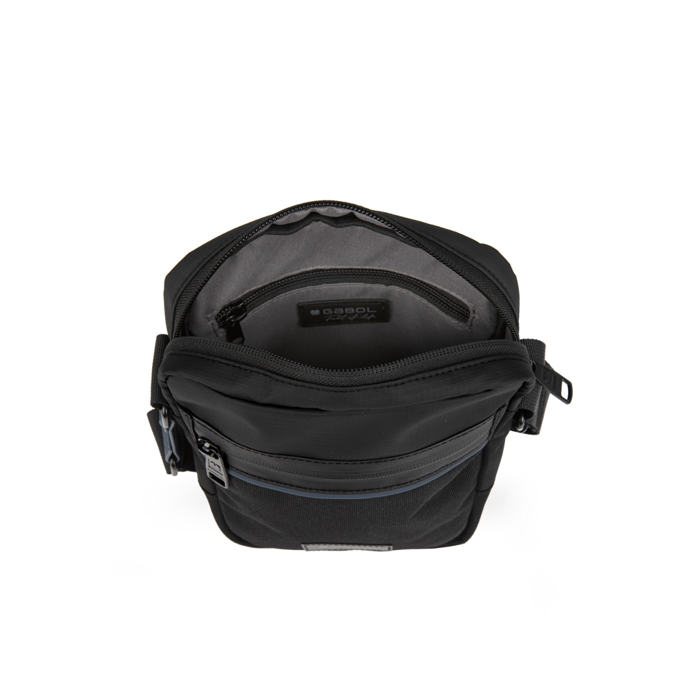 Muška torbica modernog dizajna. izrađena od poliestera, vodonepropusnog materijala, bez PVC primesa. Torbica ima dovoljno prostora da se spakuju sve potrebne sitnice. U centralnom delu poseduje glavnu pregradu i unutrašnje džepove za lakšu organizaciju. Na prednjoj i zadnjoj strani se nalaze dodatni džepovi za odlaganje svakodnevnih sitnica.