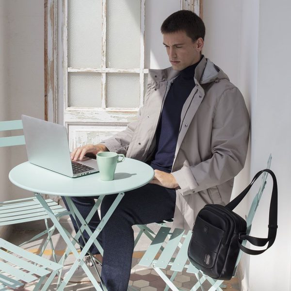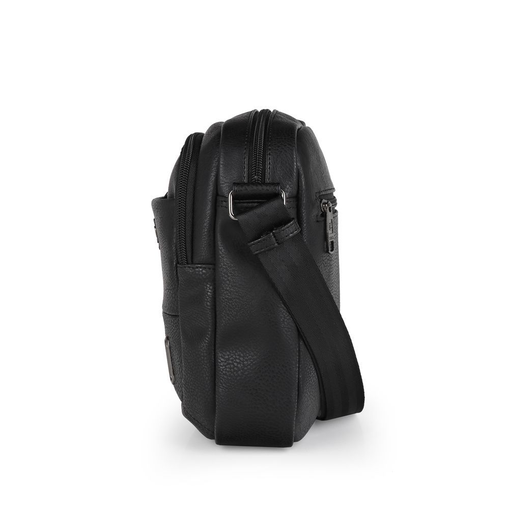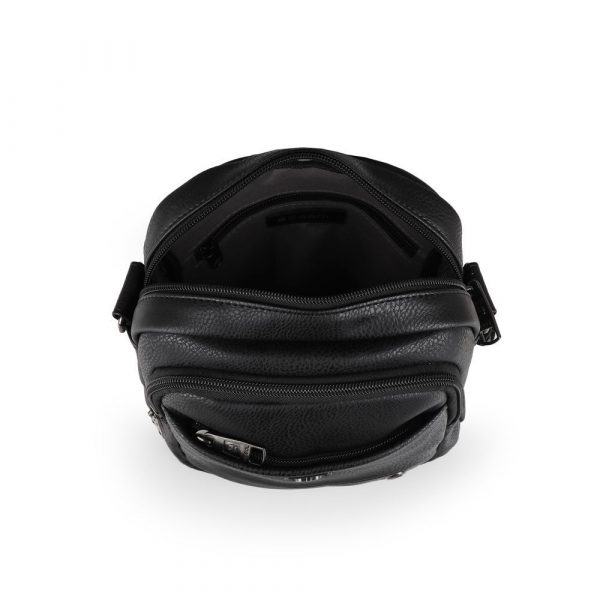 Elegantna, moderna, muška torba srednje veličine, izrađena od industrijske kože. Torba poseduje dva prednja zip džepa, veći i manji, kao i mali zip džep za zadnje strane.Centralni prostor je solidnog kapaciteta, sa dodatnom malom zip pregradom za sitnice.