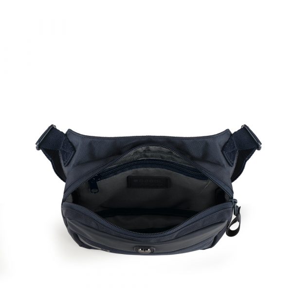 Muška torbica za struk izrađena od kombinacije sintetičke kože i Gucci najlona, vodonepropusnog materijala koji koriste mnogi renomirani svetski brendovi.Torbica ima veliku pregradu koja se zatvara zipom.